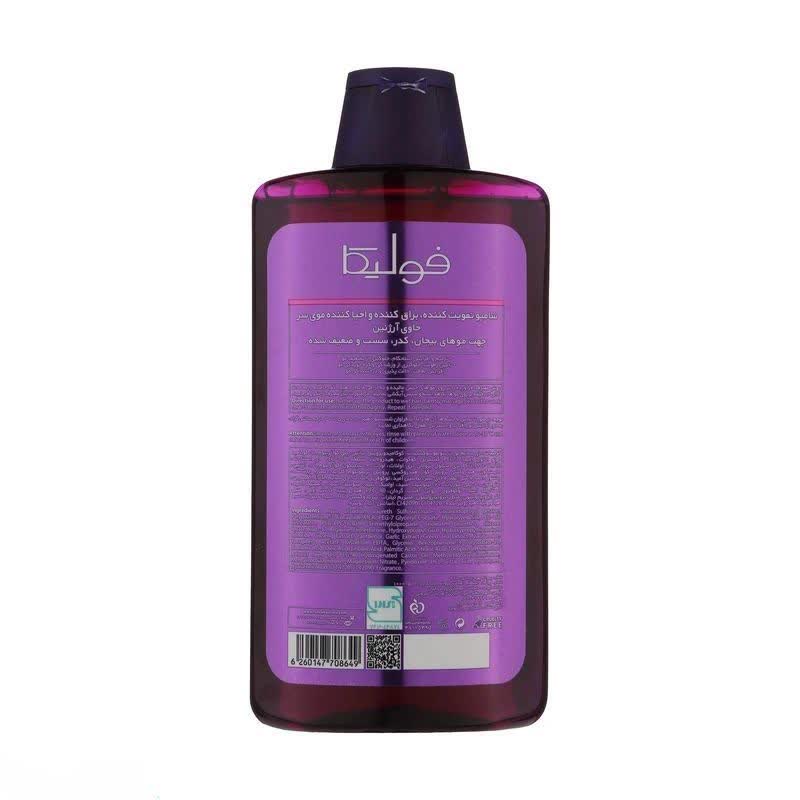 شامپو تقویت‌کننده و احیاکننده مو Argenine B فولیکا فاقد سولفات، حاوی آرژنین و هیالورونیک اسید، مناسب موهای ضعیف و آسیب‌دیده، افزایش استحکام، نرمی و درخشندگی مو.