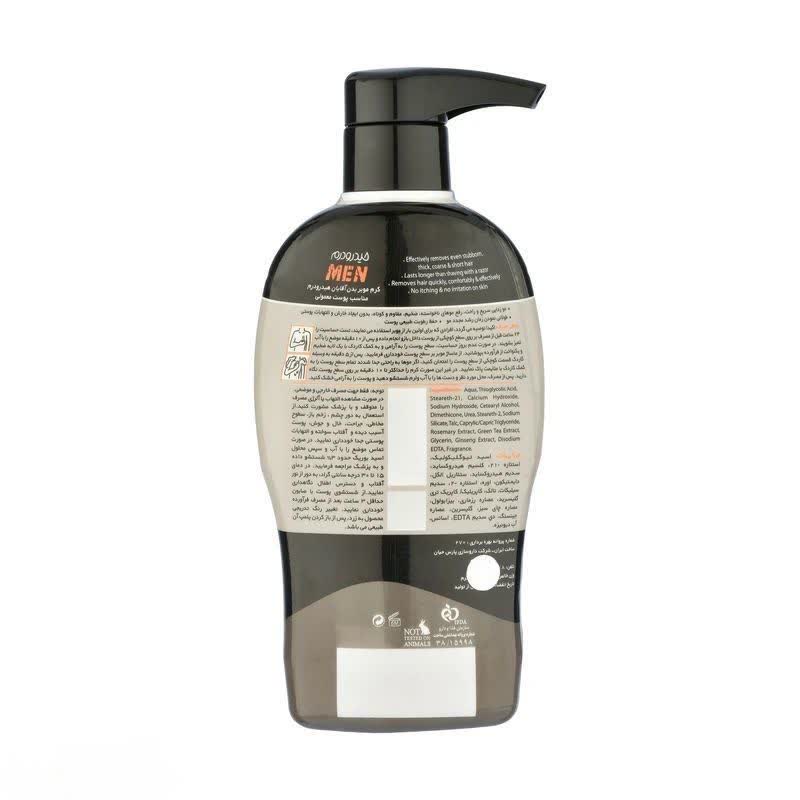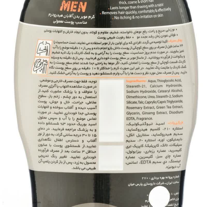 کرم موبر مردانه هیدرودرم مخصوص پوست معمولی با عصارههای گیاهی، حذف سریع و بدون درد موهای زائد صورت و بدن، بدون سوزش و التهاب، حجم 330 میل.